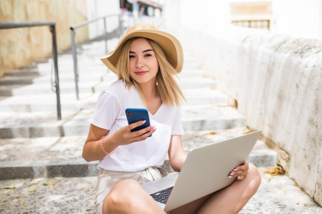 Speichere Briefings, Checklisten und Karten offline in Notion, Obsidian oder Google Drive. Eine eSIM und ein kompakter Hotspot sichern stabile Verbindungen, während vorgefertigte Notizvorlagen deine Eindrücke sofort festhalten. Welche Offline-Tools haben dir auf langen Busfahrten schon einmal den Tag gerettet?